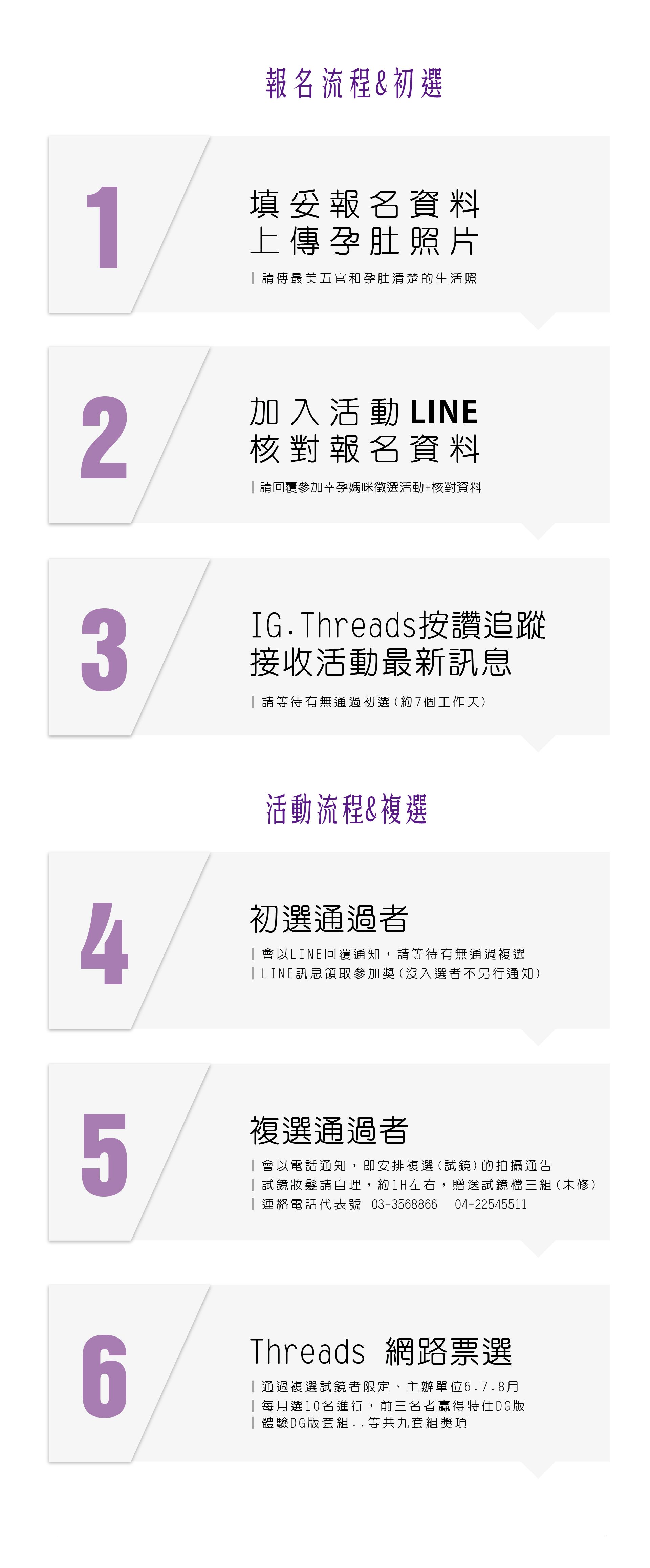 4. 每月甄選10名複選媽咪進行Threads網路票選取前三名(幸孕媽咪MODEL卡)