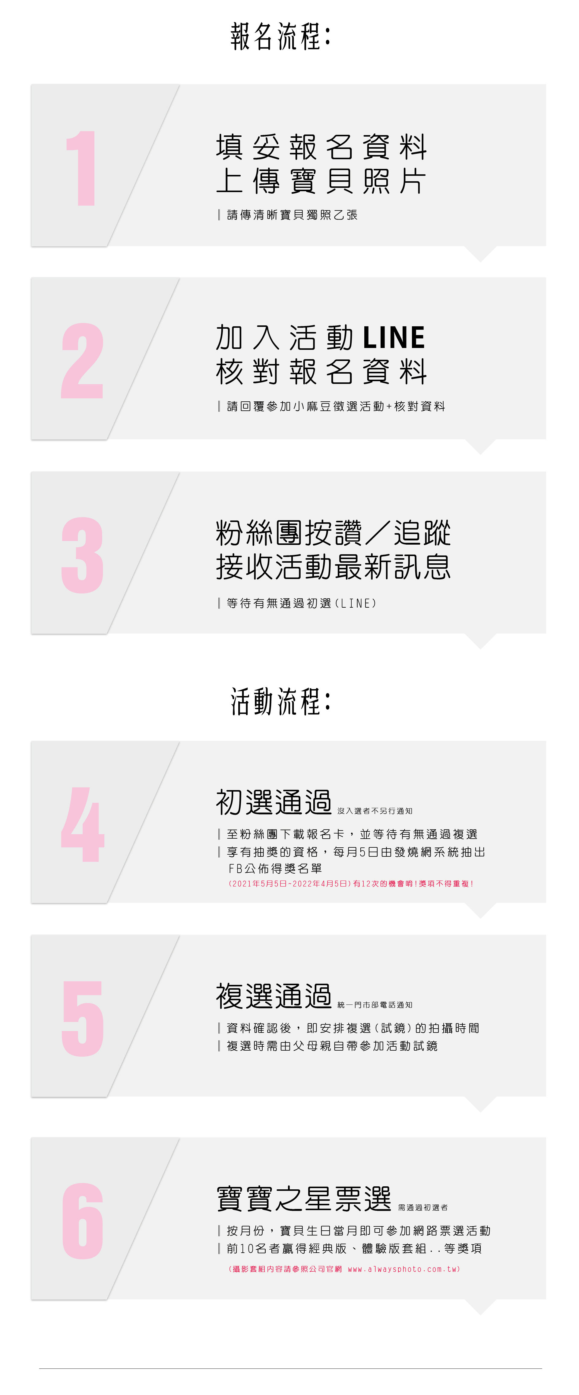 〉複選名額會以通過初選的生日寶寶每日甄選2~3名來試鏡